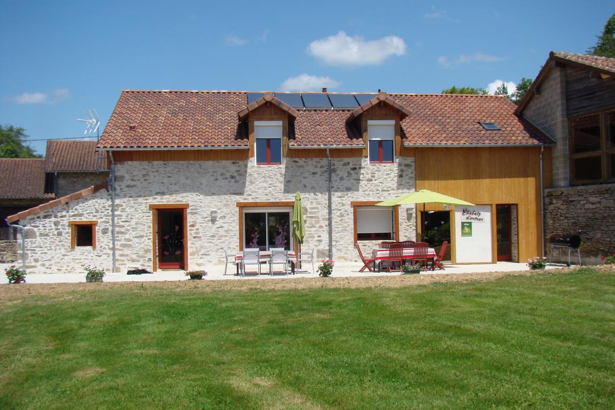 Aux portes de Limoges, dans un hameau, à l’extrémité Ouest d’une longère qui comporte l’habitation du propriétaire et un autre gîte (12 pers. avec piscine) la maison ouvre sur deux terrasses, dont une avec auvent, et une pelouse (5000 m²) privées et totalement indépendantes.
