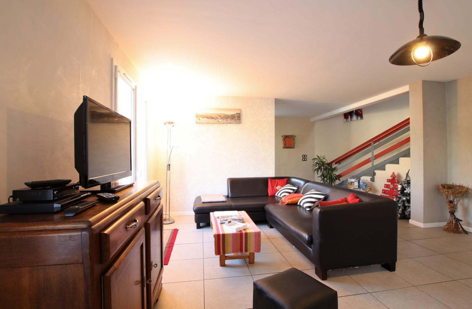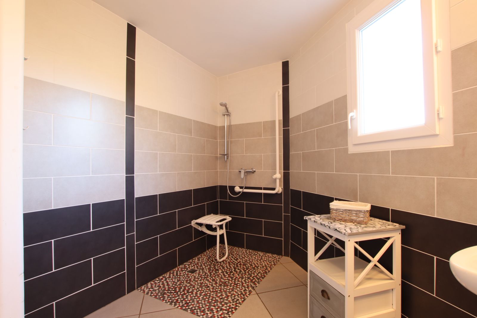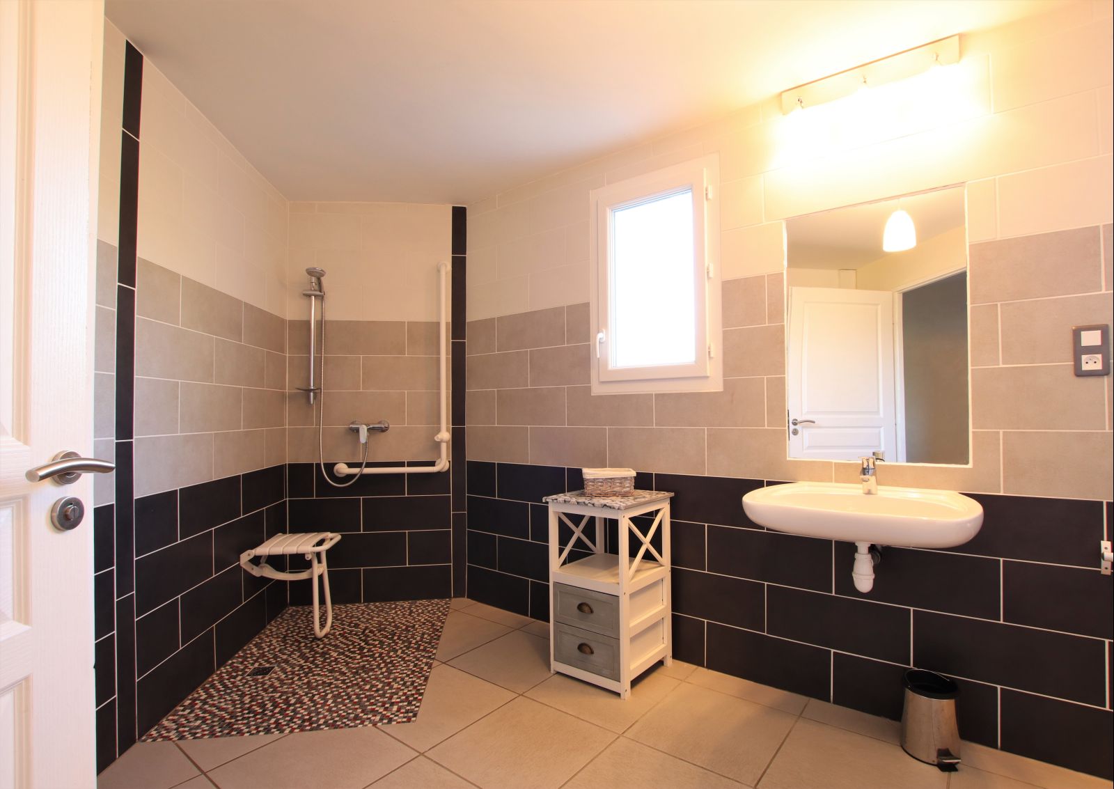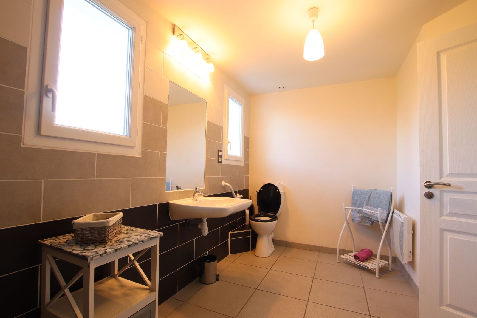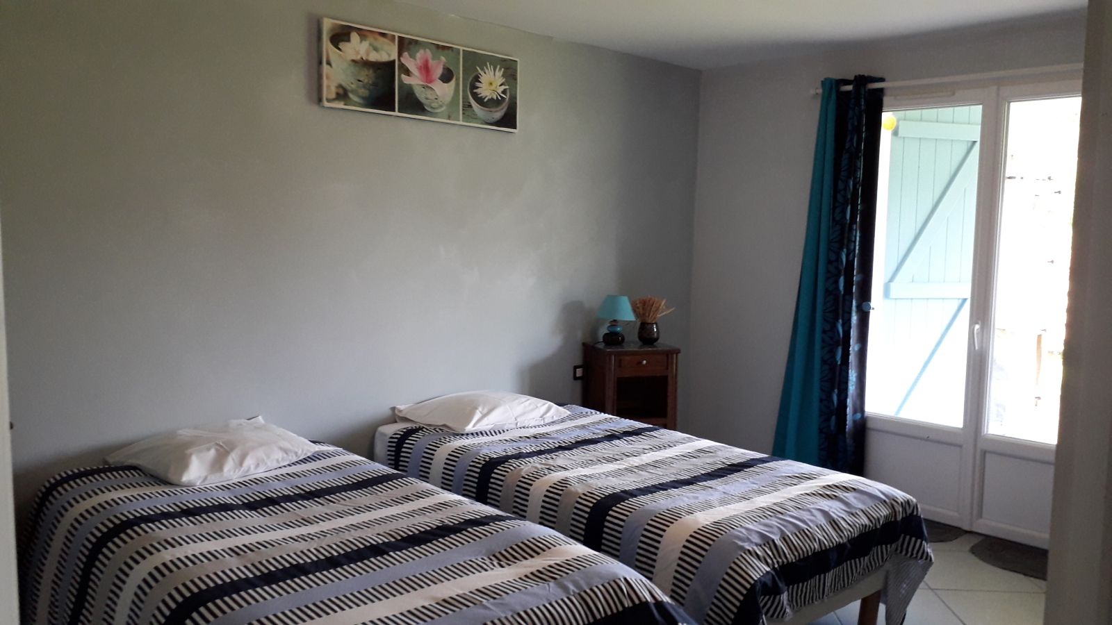 Composition : Séjour/salon avec TV + cuisine américaine + lave-vaisselle + congélateur, buanderie avec lave-linge, RDC : 1 chambre avec 2 lits 100×200, salle d’eau avec WC, Etage : 1 chambre avec 1 lit en 160 et 1 en 90, 1 chambre avec 2 lits superposés et 1 lit en 90, 1 chambre avec 1 lit en 140, salle de bains avec WC. Matériel bébé (lit bébé ) jardin, terrasse avec salon de jardin et plancha, piscine commune aux 2 gîtes, à partager, parking privé.
