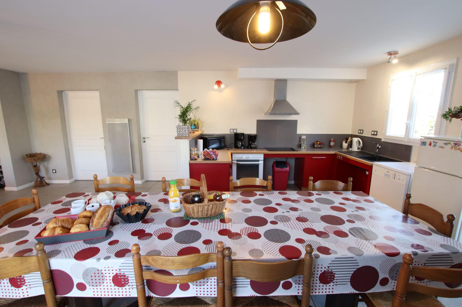 GITE 1 : Maison mitoyenne à un autre gîte de type 5P, de 180m² sur 2 niveaux. A proximité des activités (Aventure Parc, randonnées, pêche…), à 300 m des commerces, 23 km de la station de ski de La Pierre St Martin ou Issarbe et 26 km de la frontière Espagnole. MAXI 12 PERSONNES –