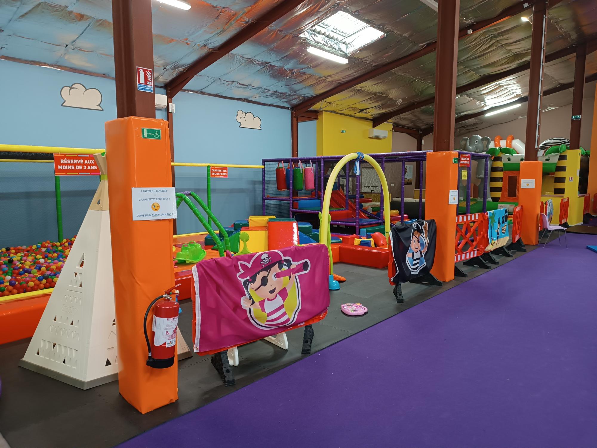 Espaces de jeux pour les enfants de 3 ans et moins, les petits moussaillons ont droit à un espace de 400m² comportant : structure gonflable, toboggan, circuit de mini motos, chenille, une piscine à balles, un parcours d’équilibre, des Lego géants, des agrès de motricité etc…