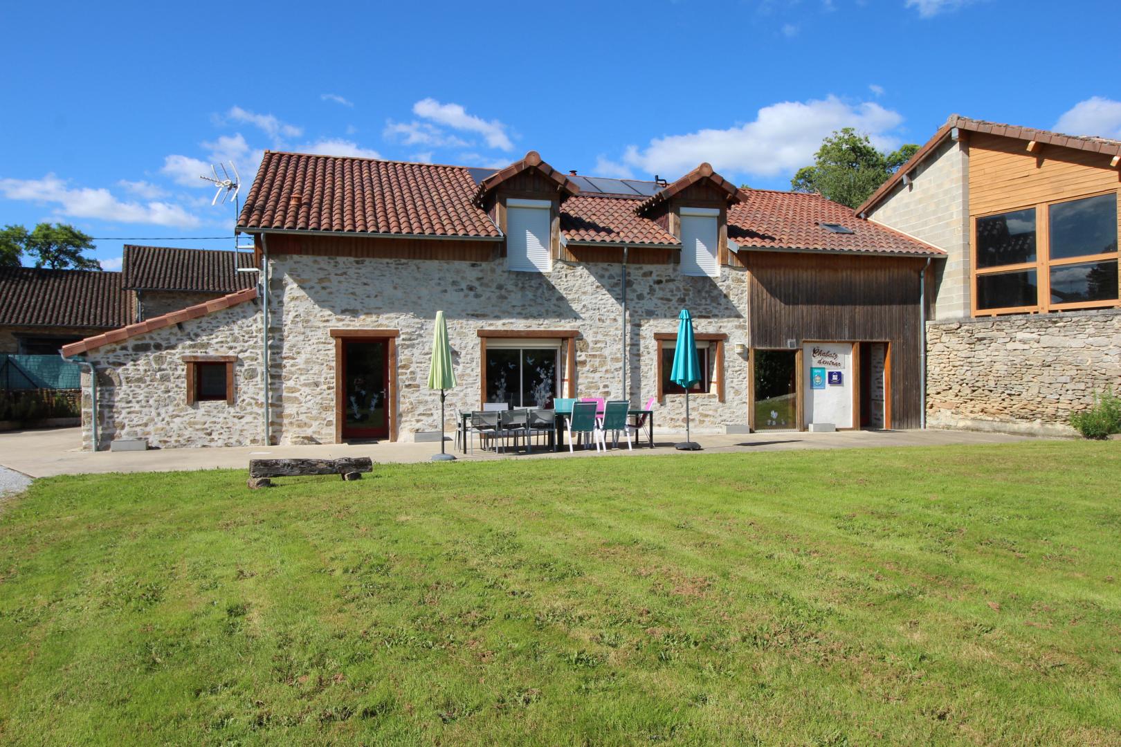 Aux portes de Limoges, dans un hameau, à l’extrémité Ouest d’une longère qui comporte l’habitation du propriétaire et un autre gîte (12 pers. avec piscine) la maison ouvre sur deux terrasses, dont une avec auvent, et une pelouse (5000 m²) privées et totalement indépendantes.
