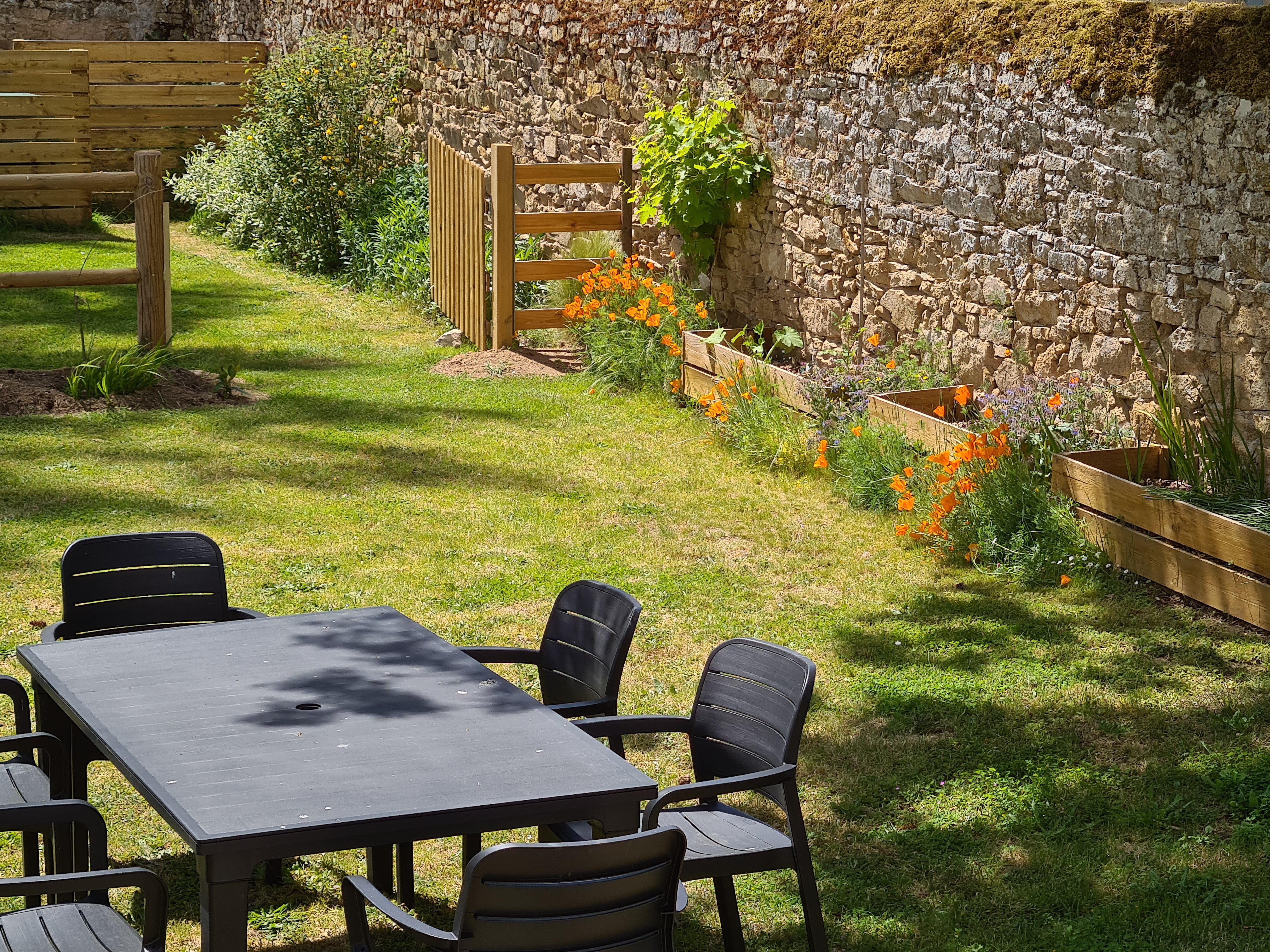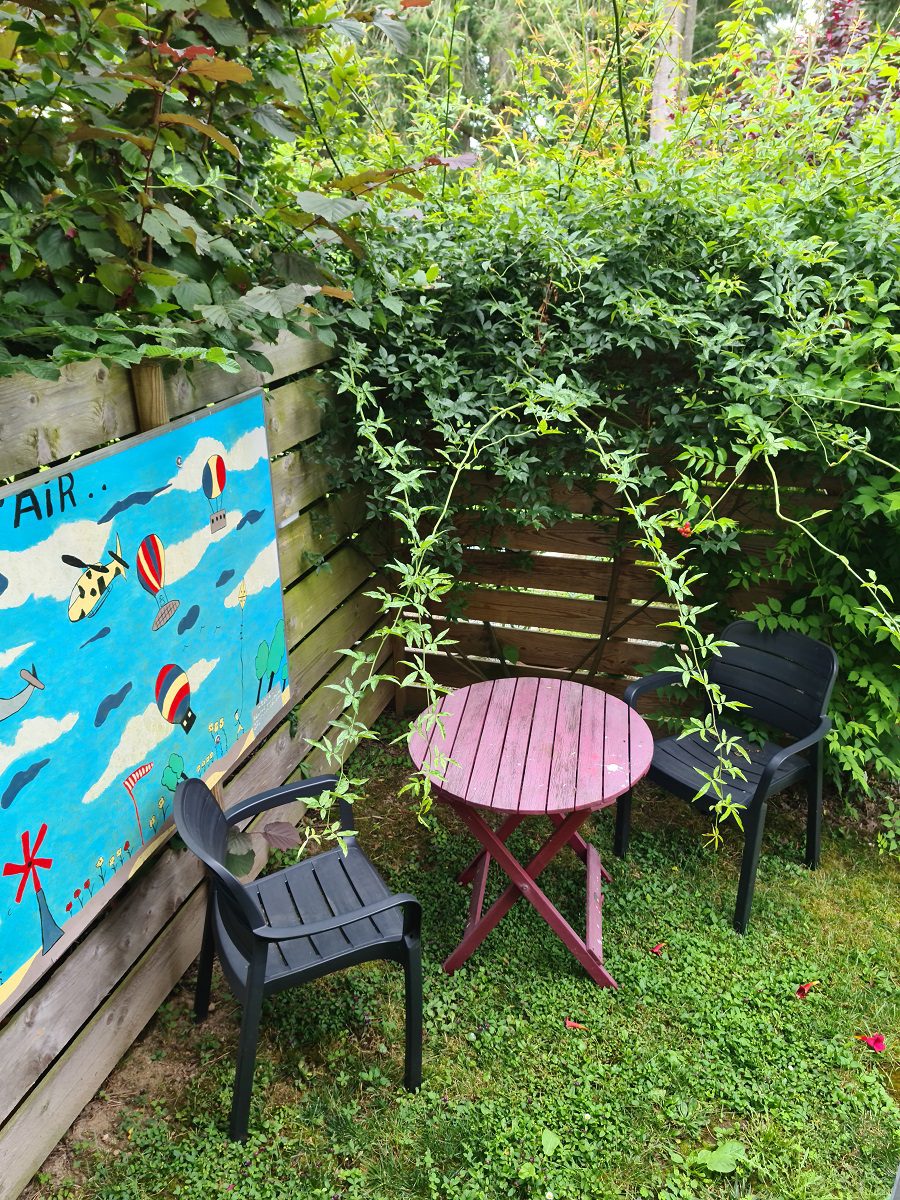 Le rdc du gîte dont l’accès au jardin, au préau et à la cour, est labellisé « Tourisme et Handicap » pour les les 4 types de déficiences.
