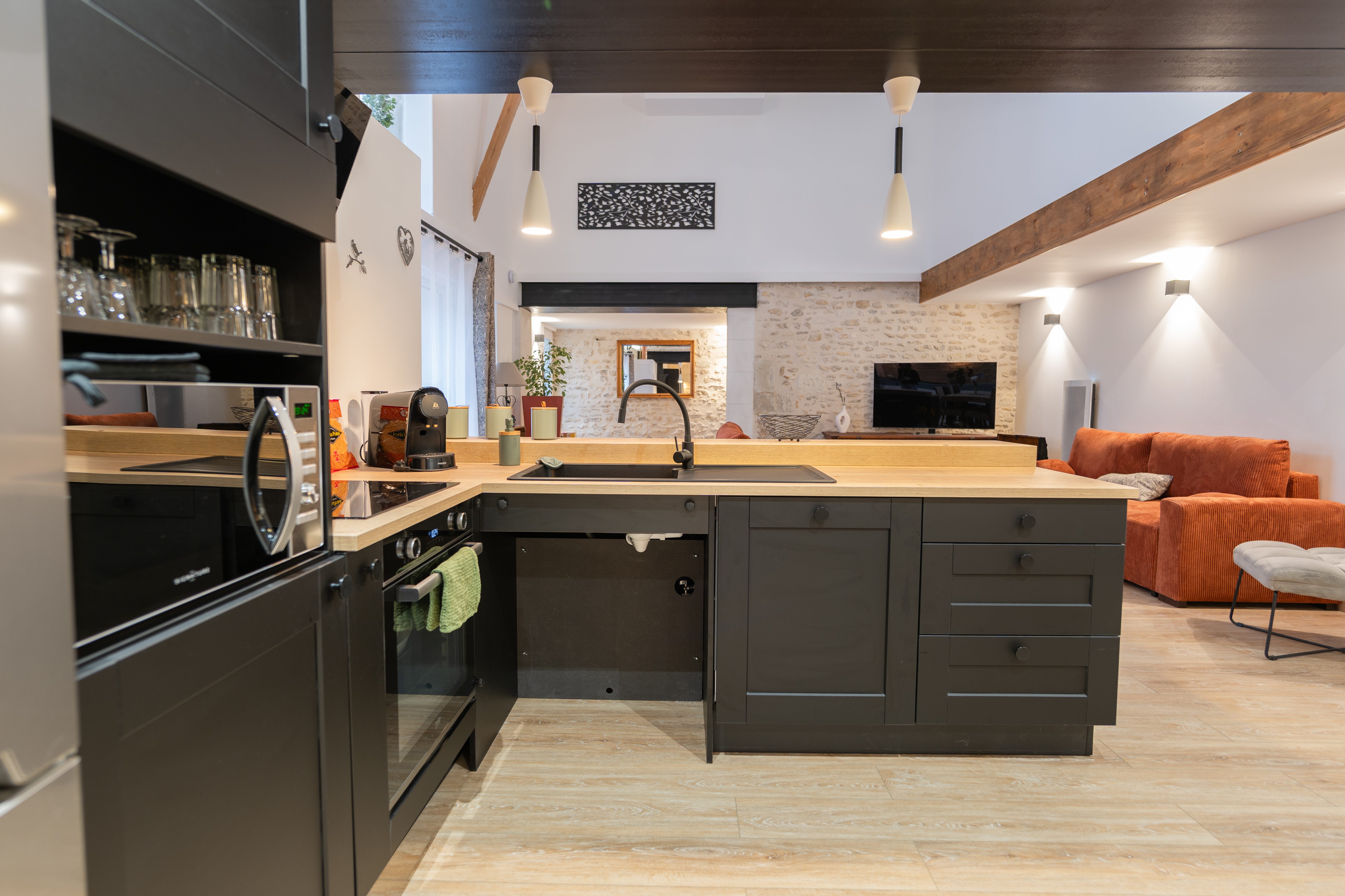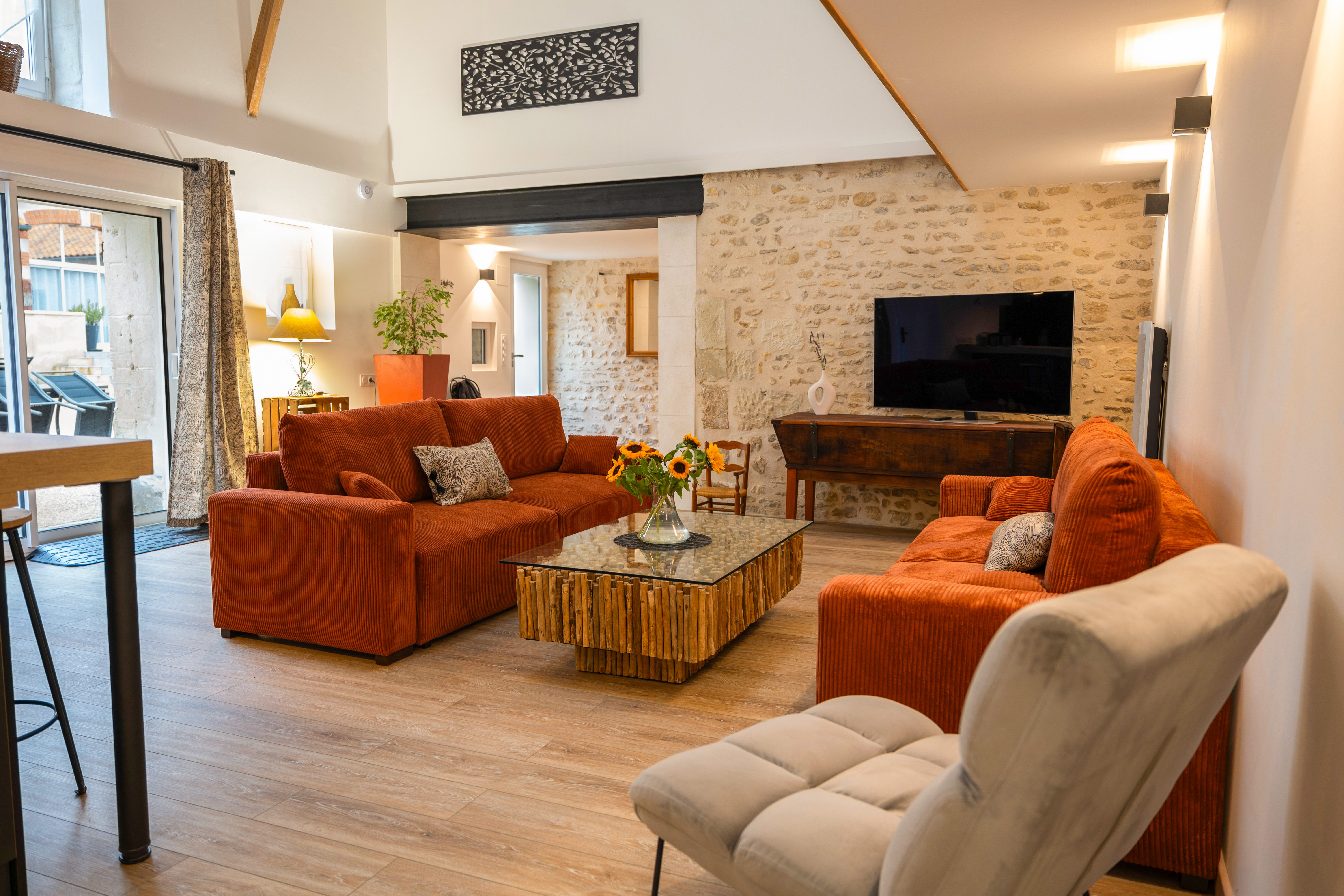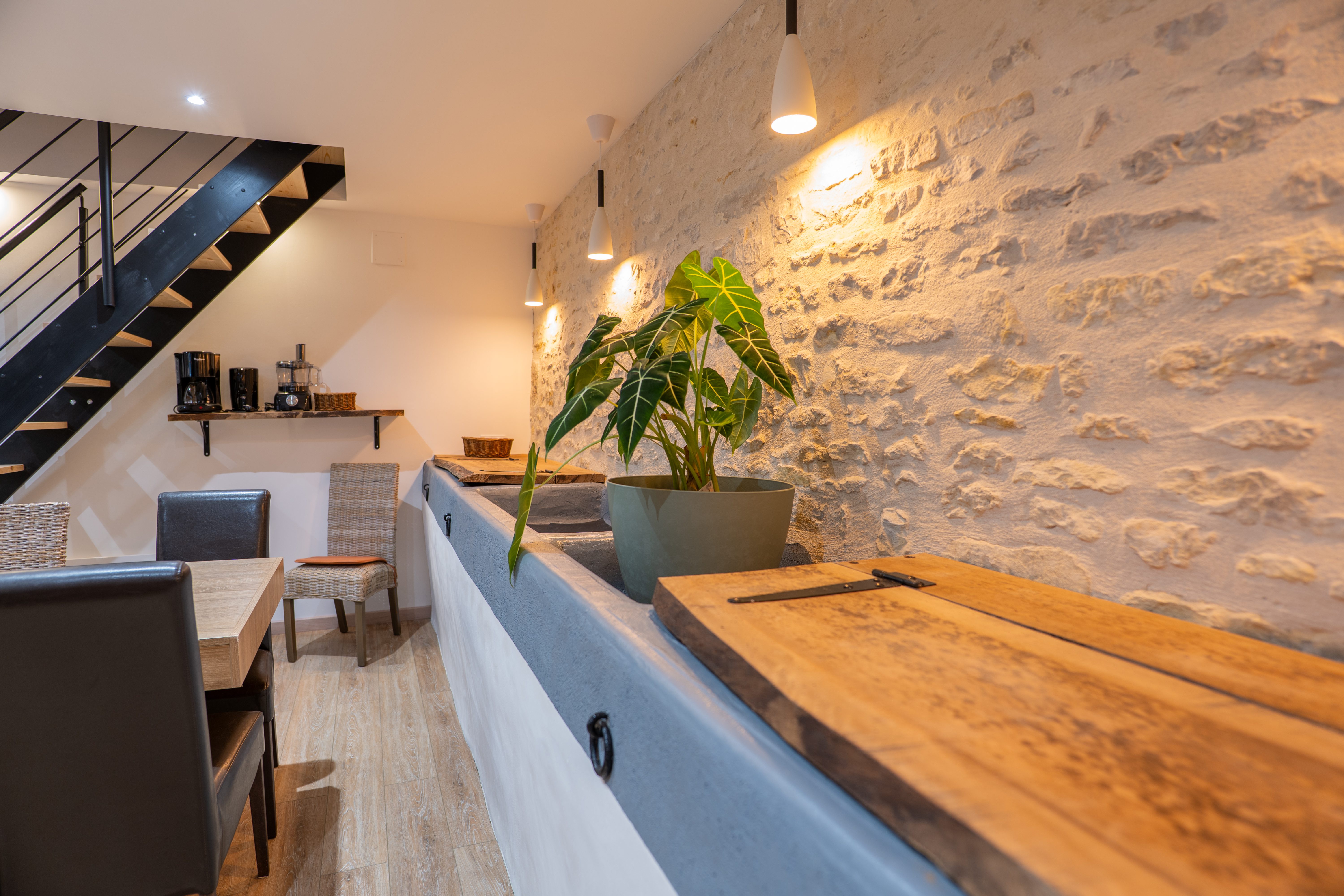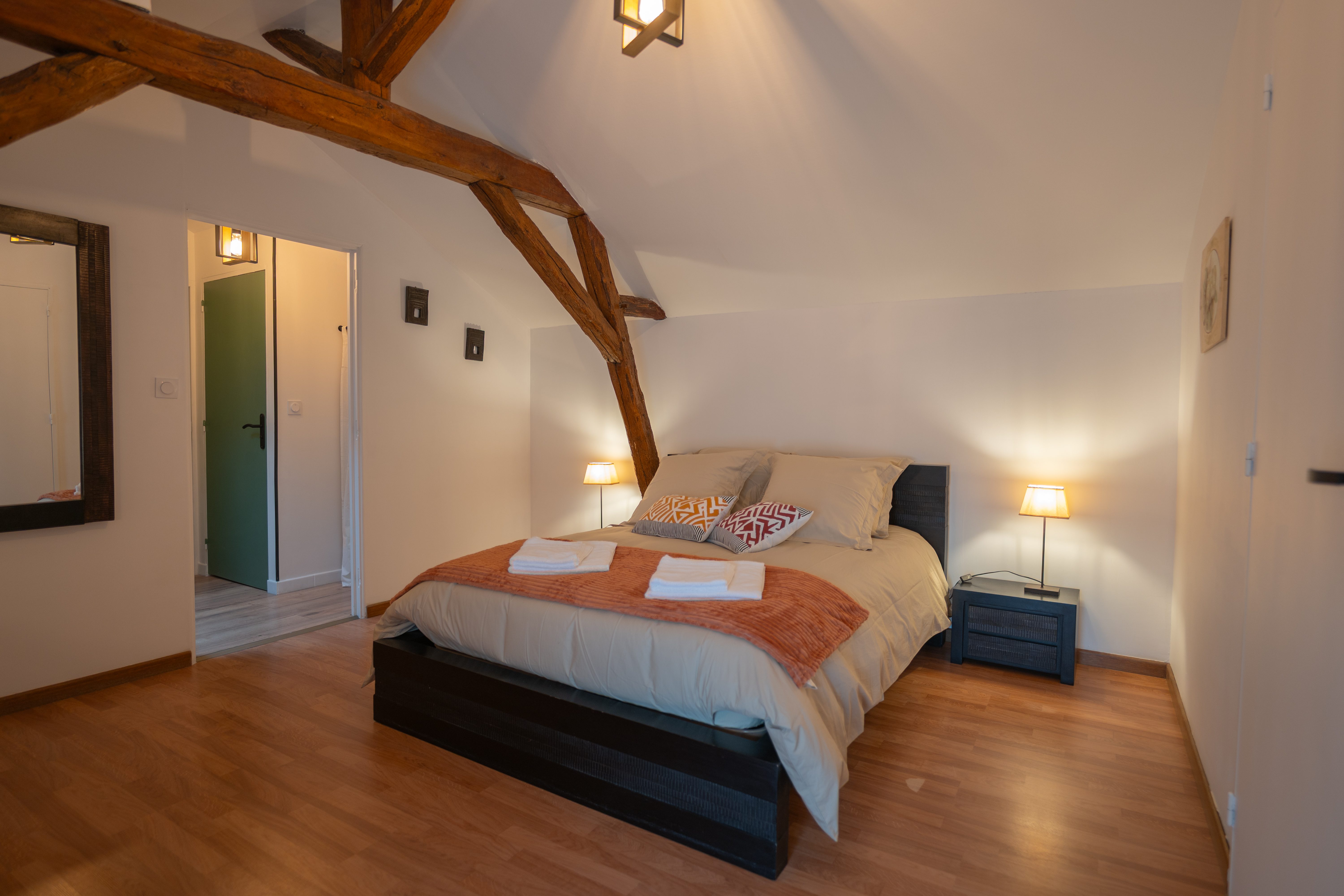 La Mangeoire est un gîte pour 8 personnes, idéal pour un séjour en famille ou pour se retrouver entre proches. Sa pièce de vie atypique, aménagée dans une ancienne étable, met en valeur les mangeoires d’origine soigneusement restaurées. Vous y trouverez une cuisine entièrement équipée ainsi qu’un salon chaleureux et confortable. Au rez-de-chaussée, une chambre lumineuse et charmante, adaptée aux personnes à mobilité réduite, dispose d’un lit 160 cm. Elle est accompagnée d’une salle d’eau avec commodités accessibles.