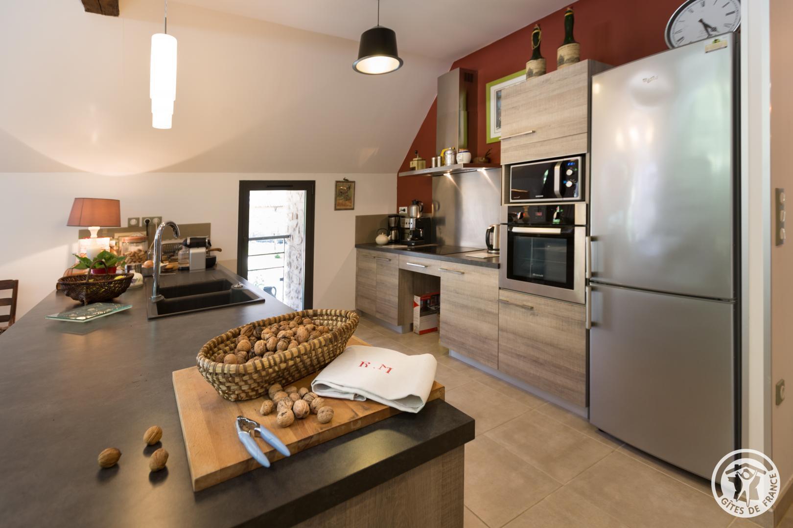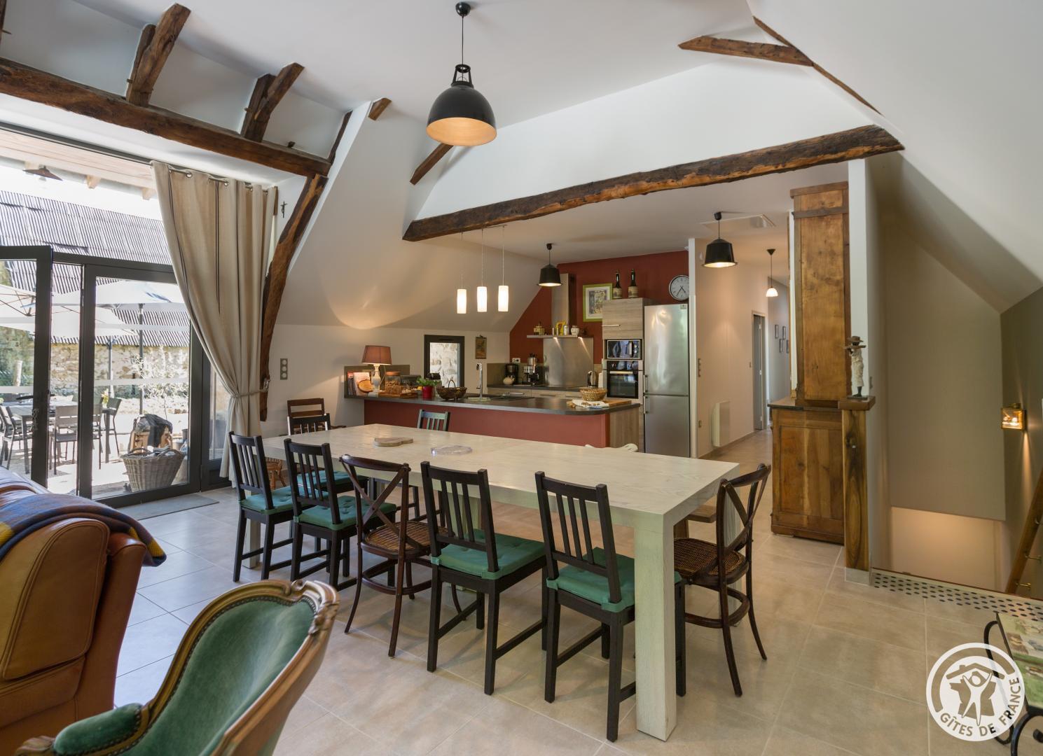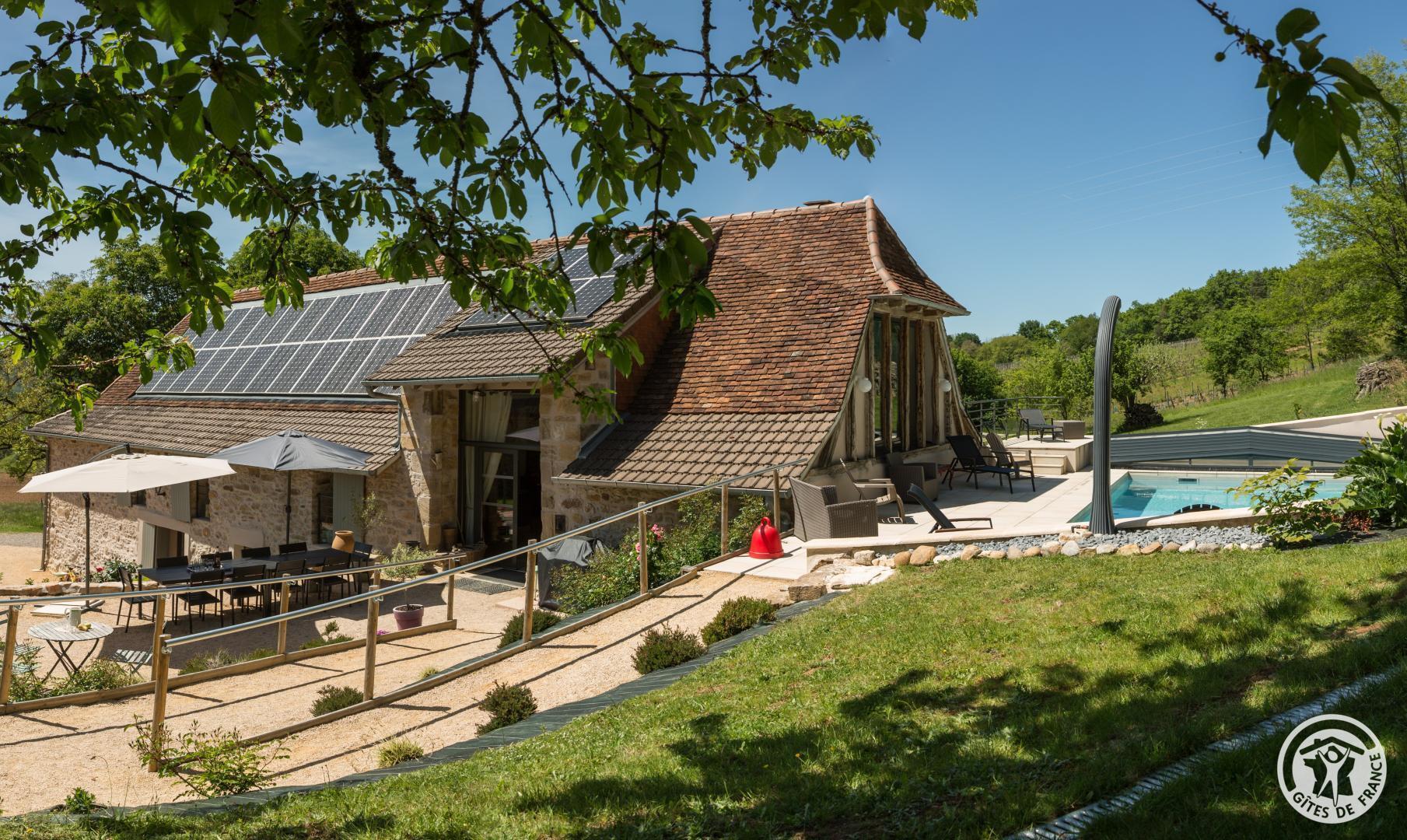 Grand gîte aménagé dans une ancienne grange. Wifi gratuit. Situé à flanc de coteaux, il profite d’un ensoleillement maximum qui permet d’apprécier sa piscine couverte et sécurisée par un abri bas (dimensions 10X5m, profondeur 1m50, au sel) et son solarium. Celle-ci est ouverte et chauffée d’avril à septembre (en fonction de la météo). Au niveau des marches, un petit espace avec peu de fond, idéal pour les bébés. Aménagé sur deux niveaux mais accessibles chacun de plain-pied, il est idéalement conçu pour recevoir les familles ou les groupes d’amis. Des jeux pour enfants (jeux de société et portique extérieur) sont à disposition, ainsi qu’une table de ping-pong et un terrain de pétanque (boules fournies) pour de longues parties … Proche des « Plus Beaux Villages de France » comme Beaulieu sur Dordogne, Collonges la Rouge, Curemonte, Turenne, Carennac, Saint Cirq Lapopie, Salers … Gît …