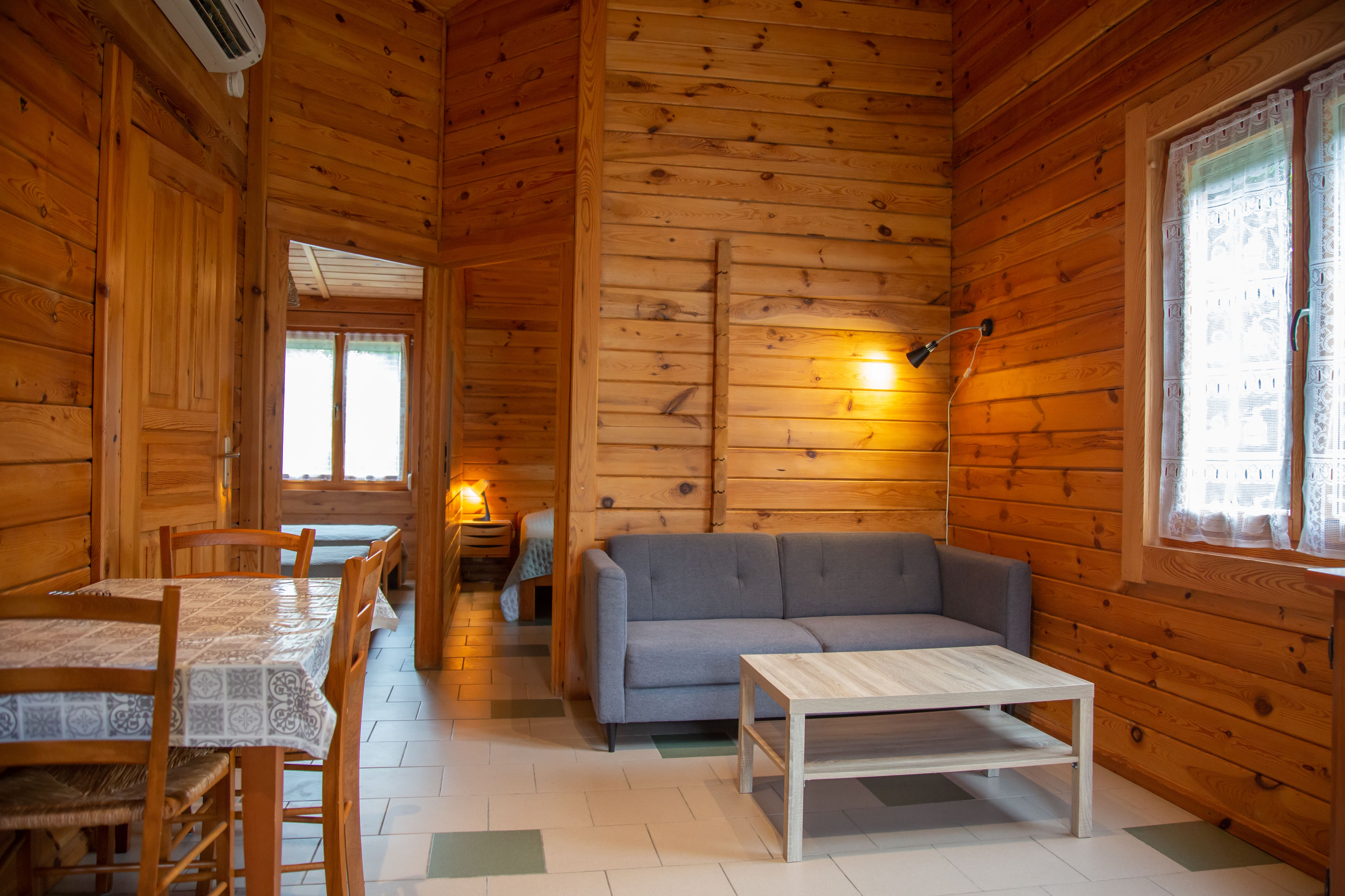 Les chalets en bois confortables et climatisés sont dotés d’une terrasse individuelle donnant sur le parc (jeux enfants, boulodrome). Les plus : accueil personnalisé, wifi, emplacement voiture devant chalet.