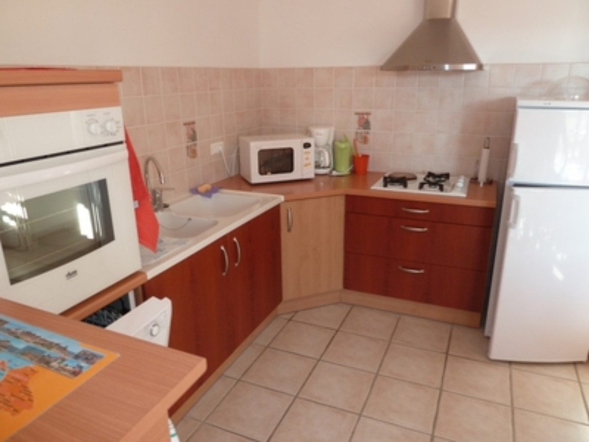 Ce meublé est équipé d’une cuisine américaine, d’un salon – salle de séjour, de 3 chambres (1 chambre avec un lit double de 140 cm, 1 chambre avec un lit double de 160 cm, et 1 troisième chambre avec 2 lits simples de 90 cm), d’une salle d’e…