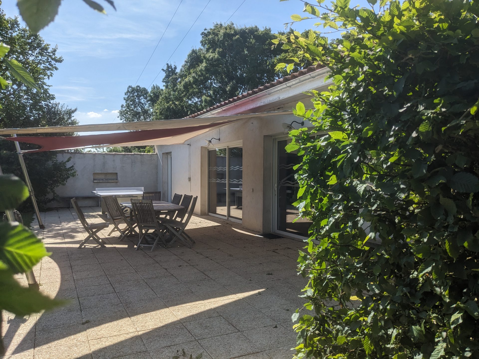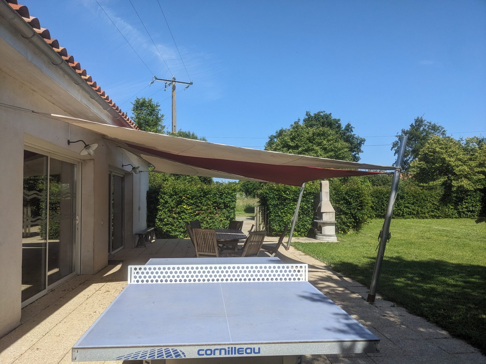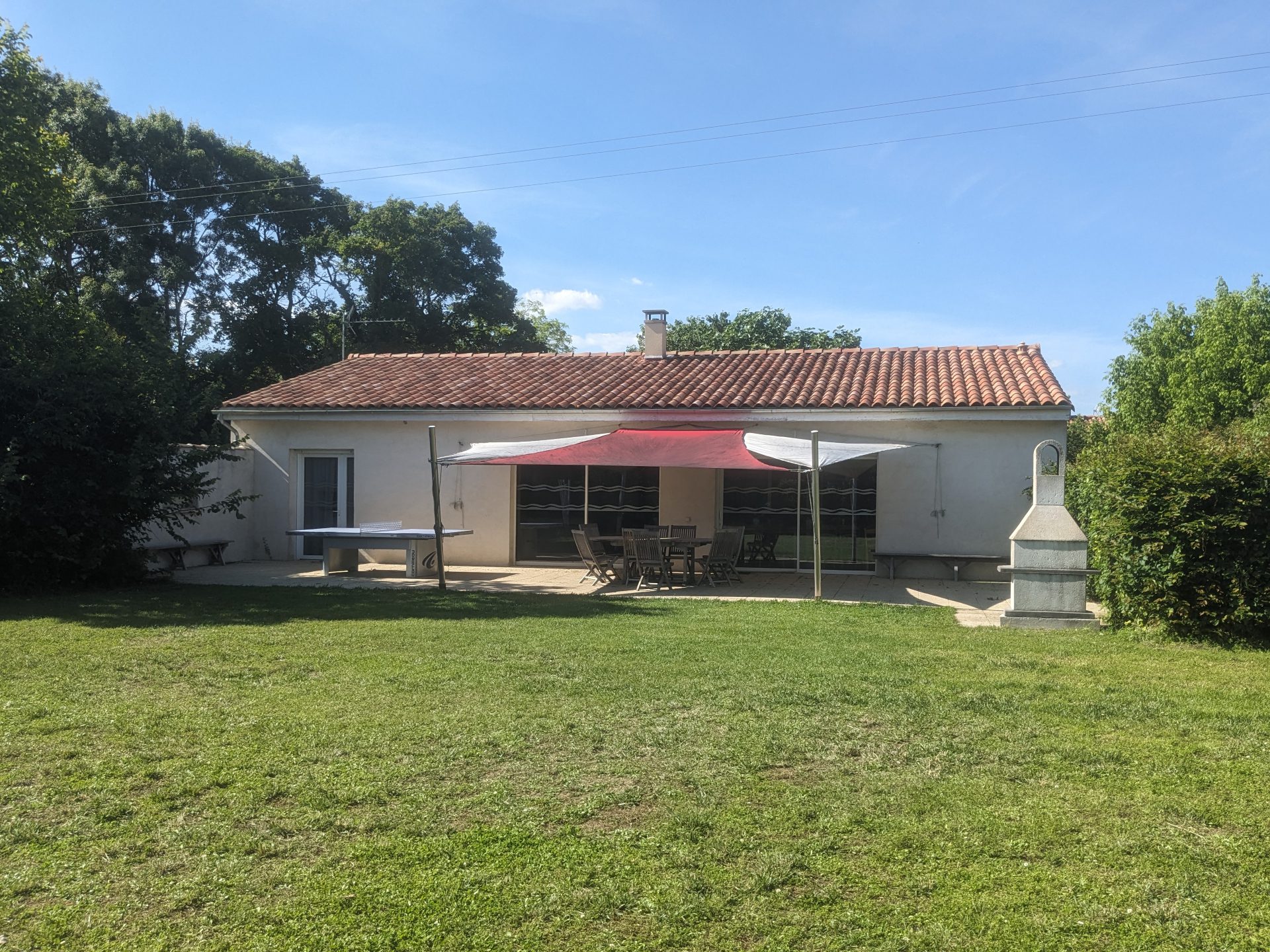 Extérieurs équipés : salon de jardin, barbecue et transats pour profiter pleinement du calme environnant.
