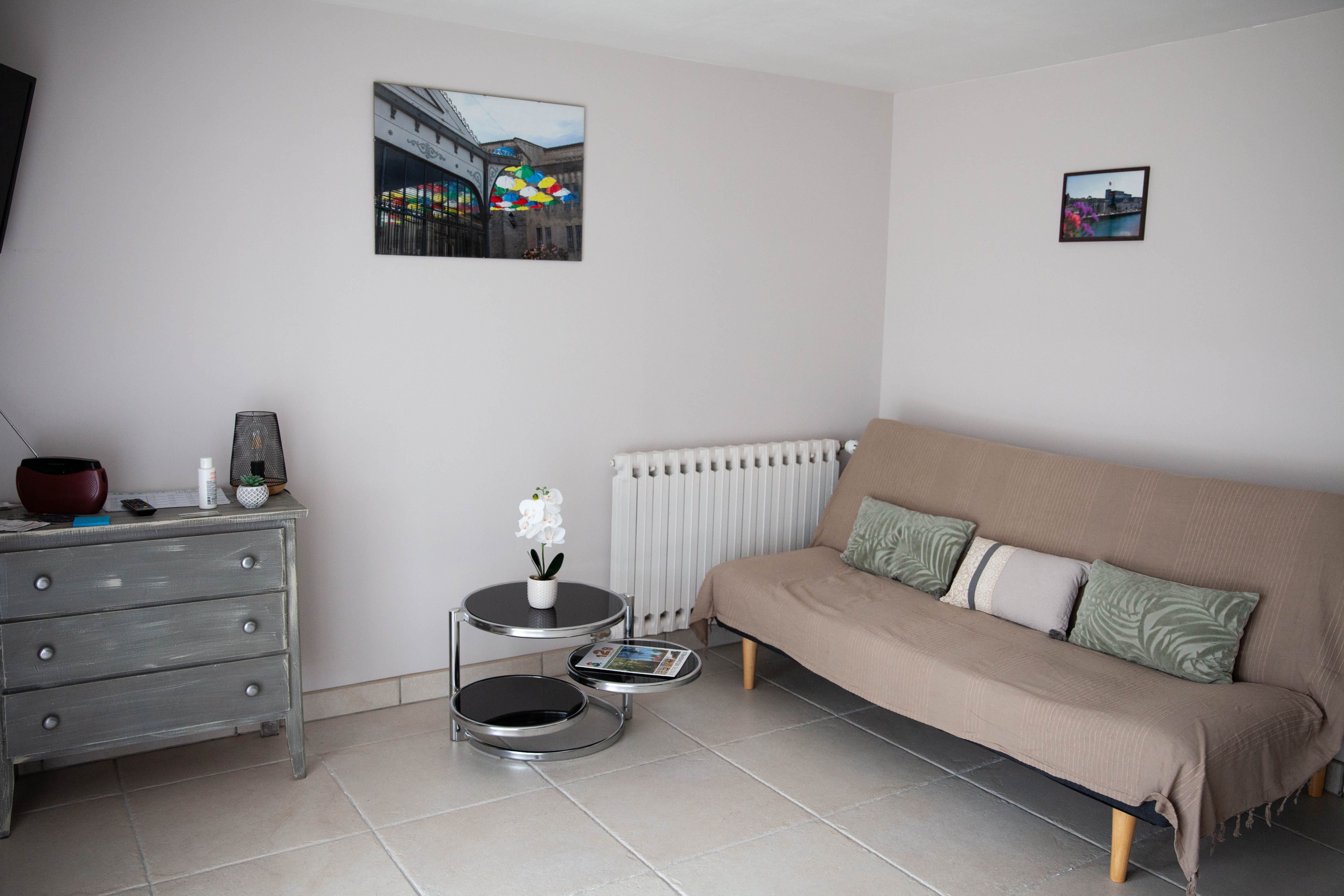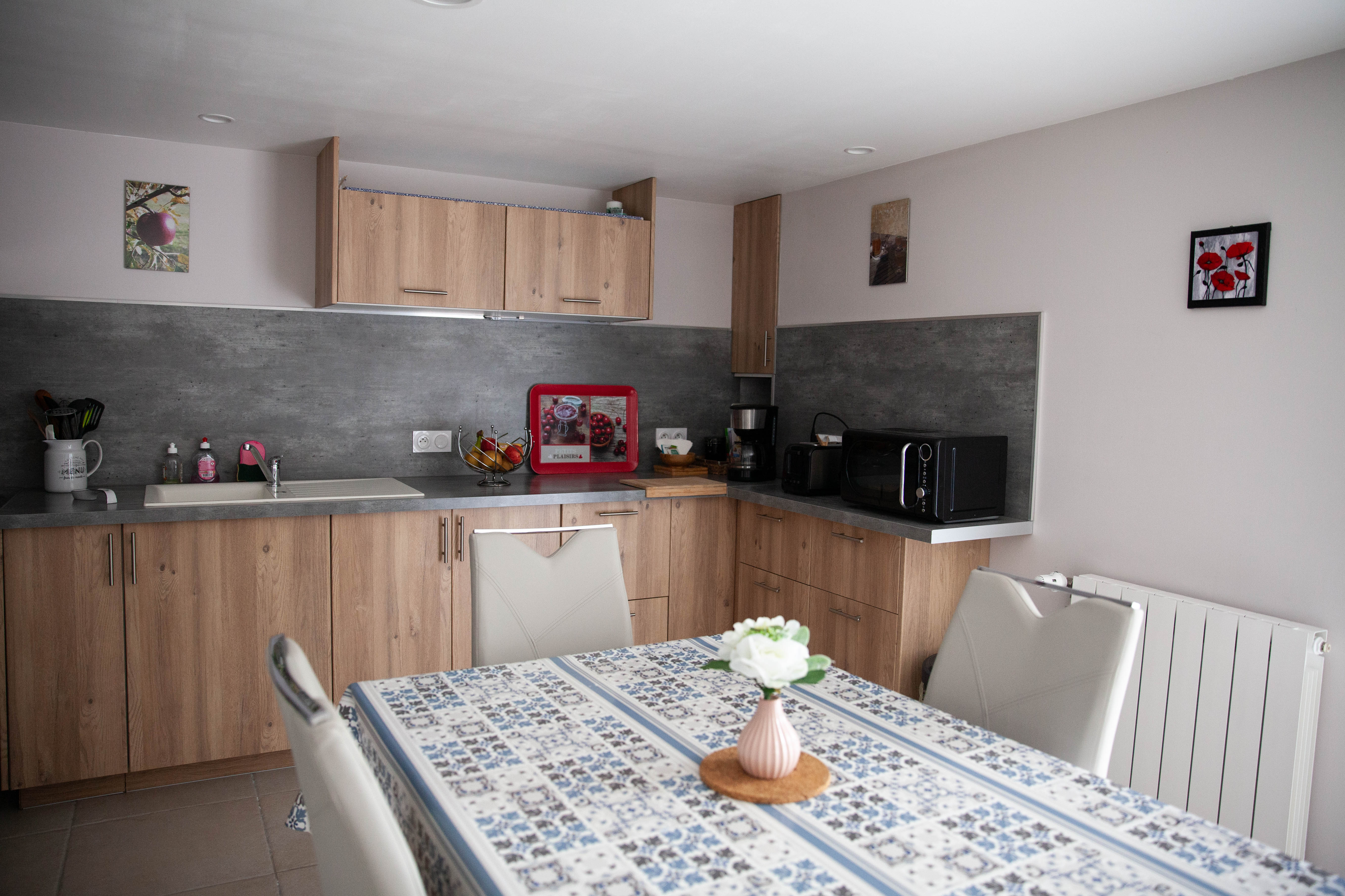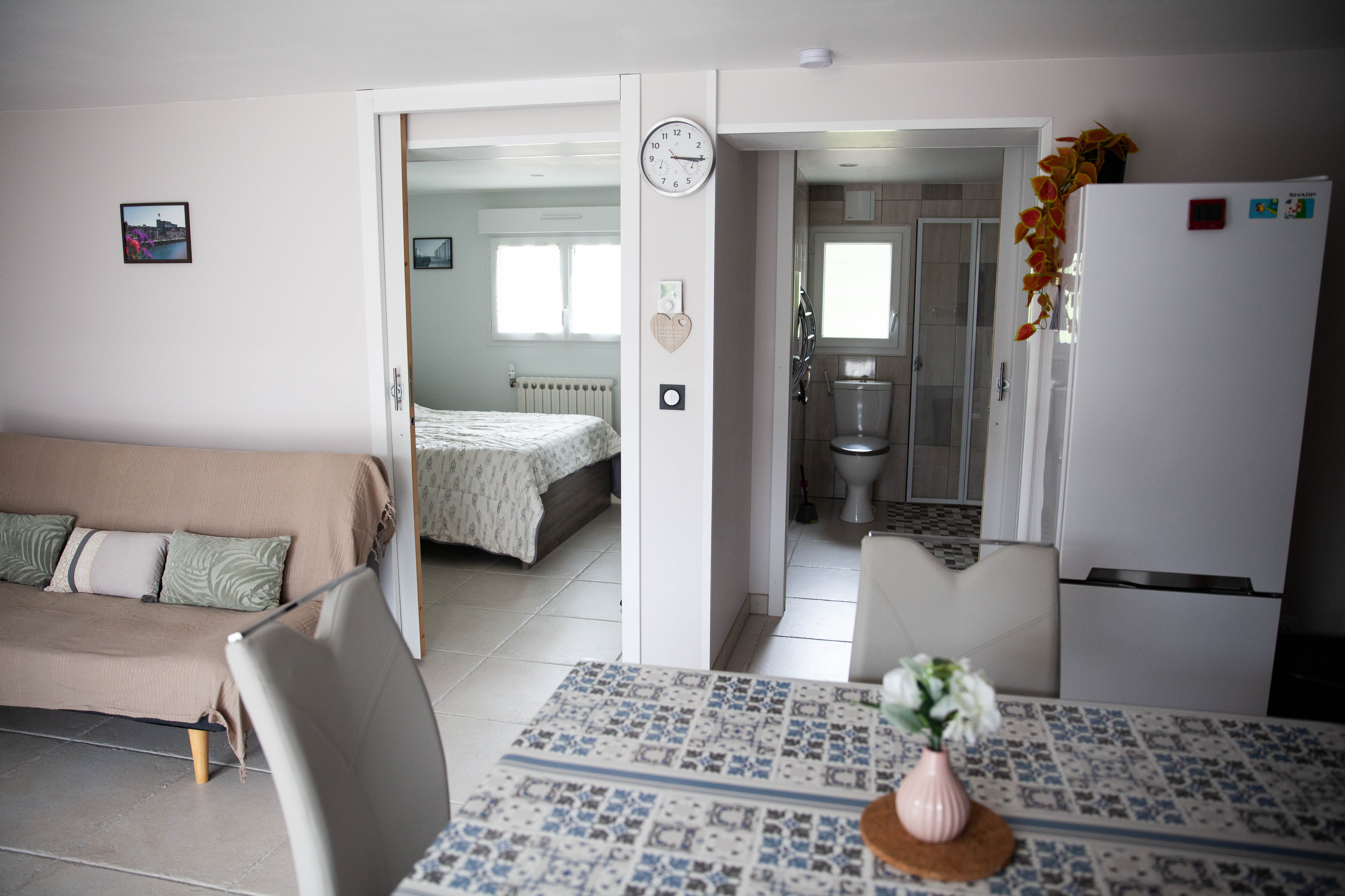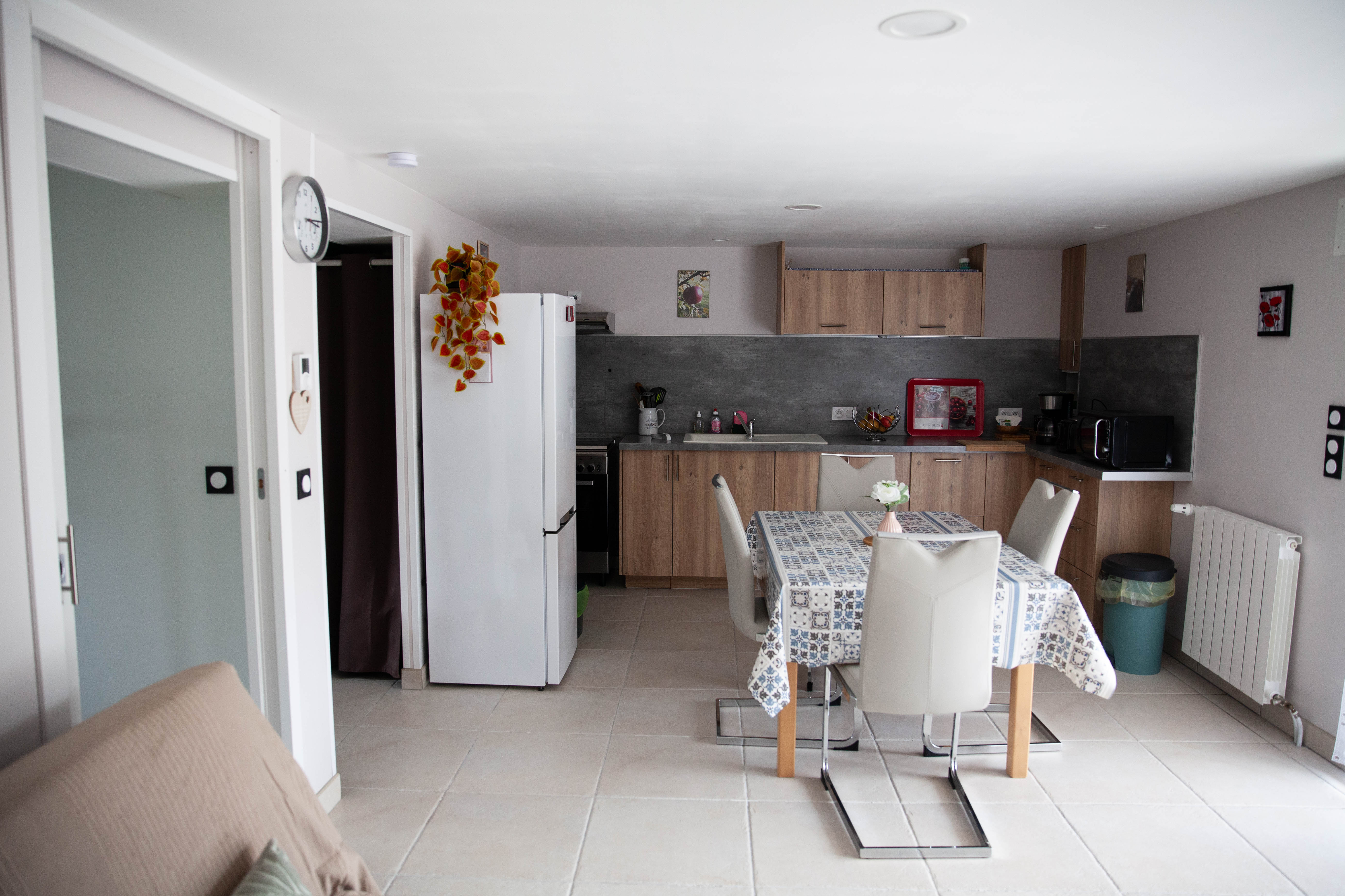 À l’extérieur, terrasse privative, parking, barbecue disponible et grand jardin commun avec 3 autres appartements
