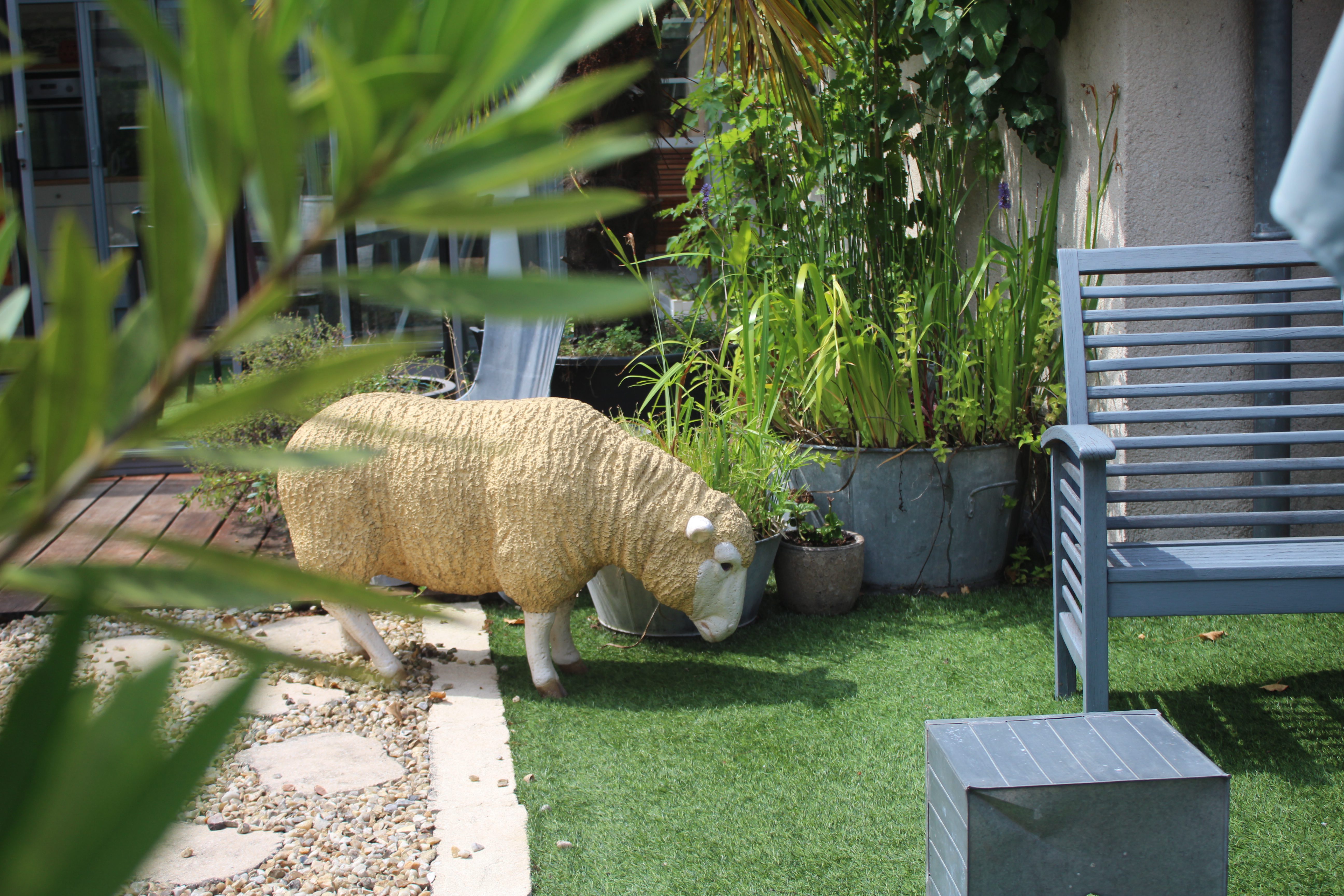 Accédez à notre terrasse ensoleillée avec vue sur les toits, parfaite pour vous détendre dans nos transats ou dans notre salon de jardin.