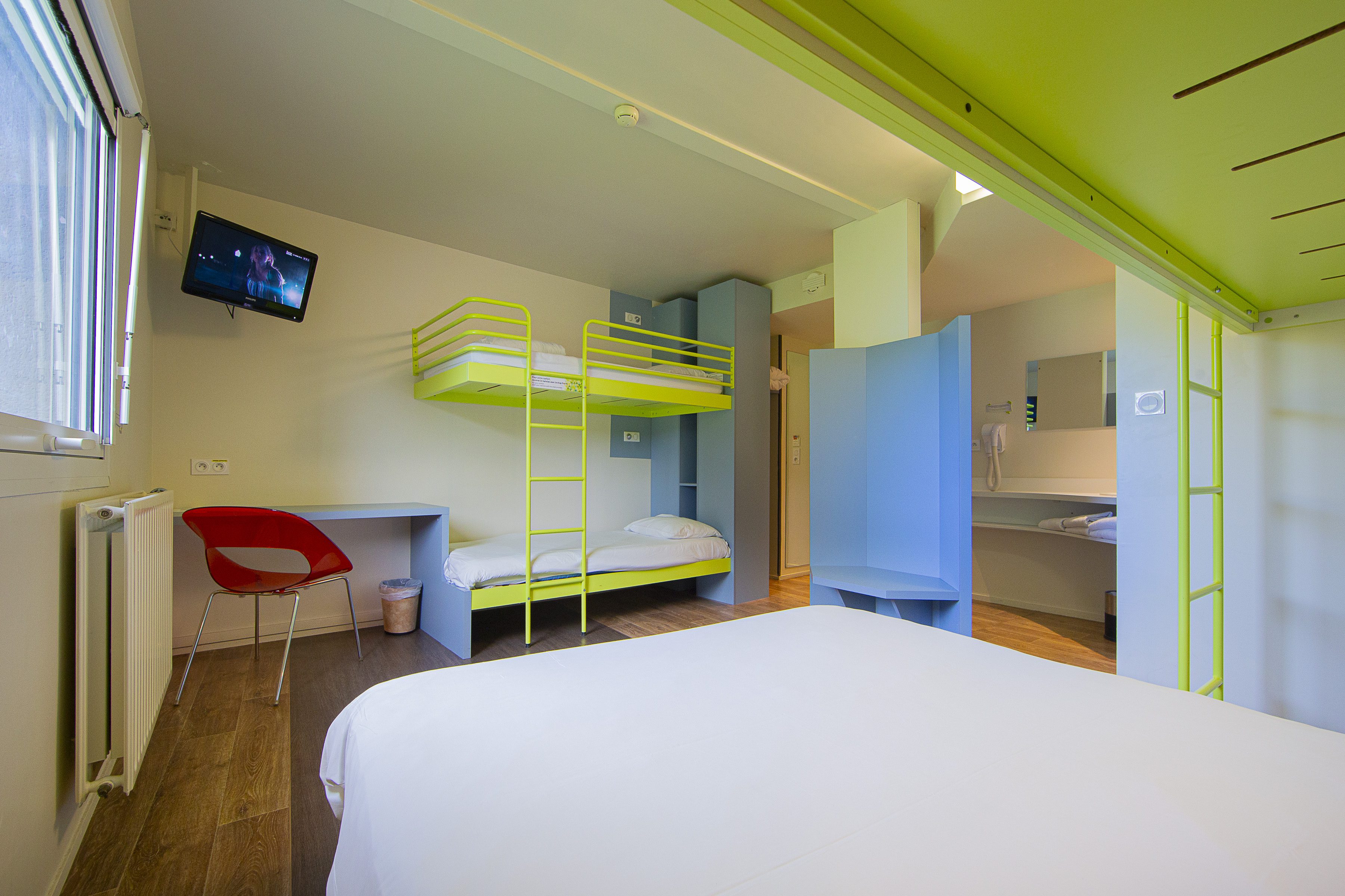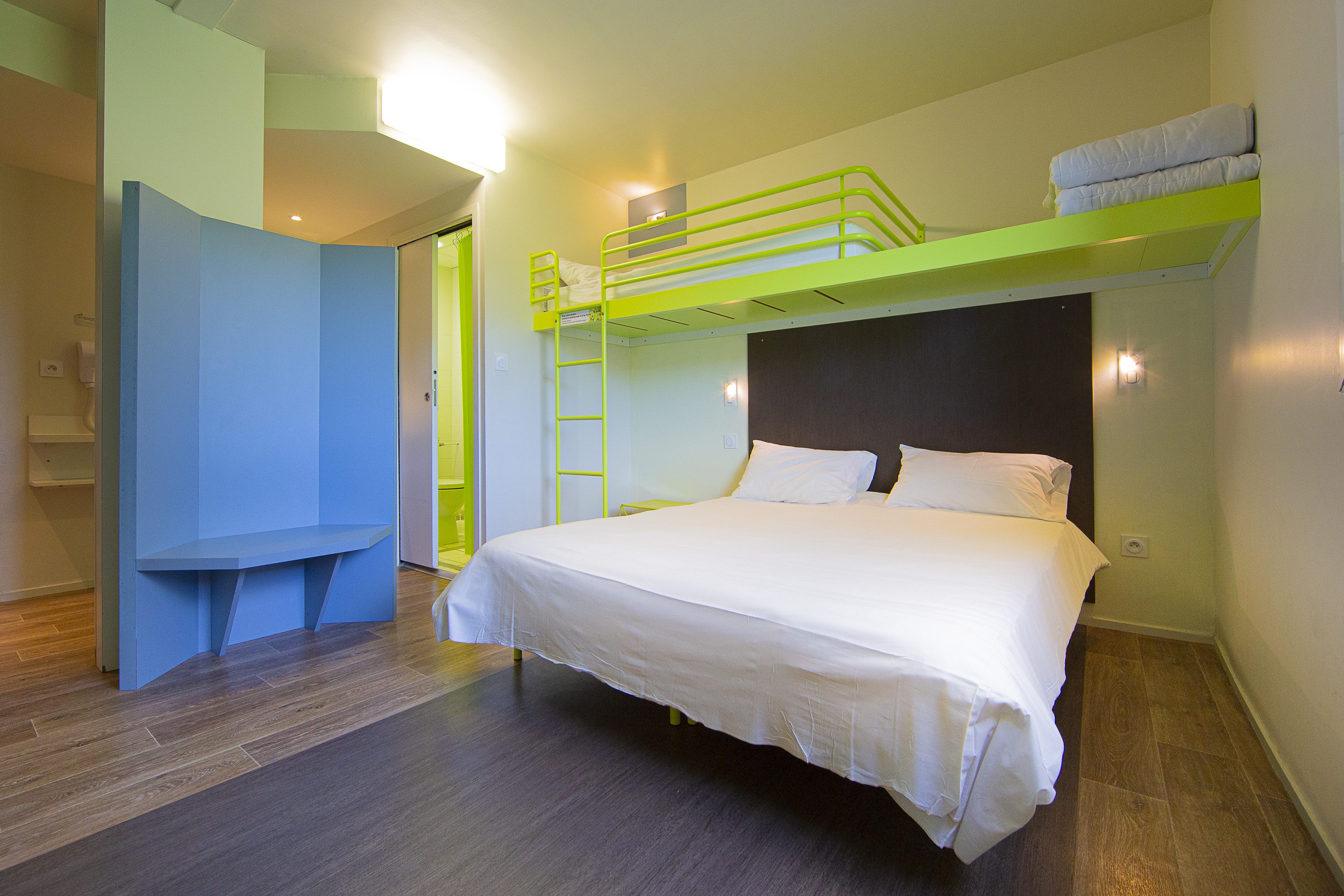 L’Hôtel 1 étoile du Parc du Futuroscope avec accès direct au coeur du parc par une passerelle piétonnière réservée aux clients de l’hôtel. 289 chambres spacieuses au décor contemporain et zen pouvant héberger de 1 à 5 personnes (accès Wi-Fi gratuit, télévision écran plat, salle de bain avec douche et toilettes, sèche-cheveux, lits superposés dans les chambres occupées par 5 personnes).