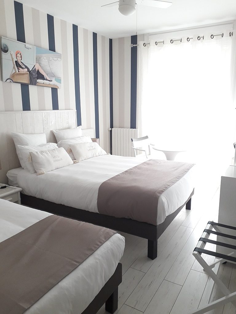 Hôtel de 27 chambres (dont 12 avec vue sur l’océan). La chambre familiale est constituée de deux chambres communicantes.