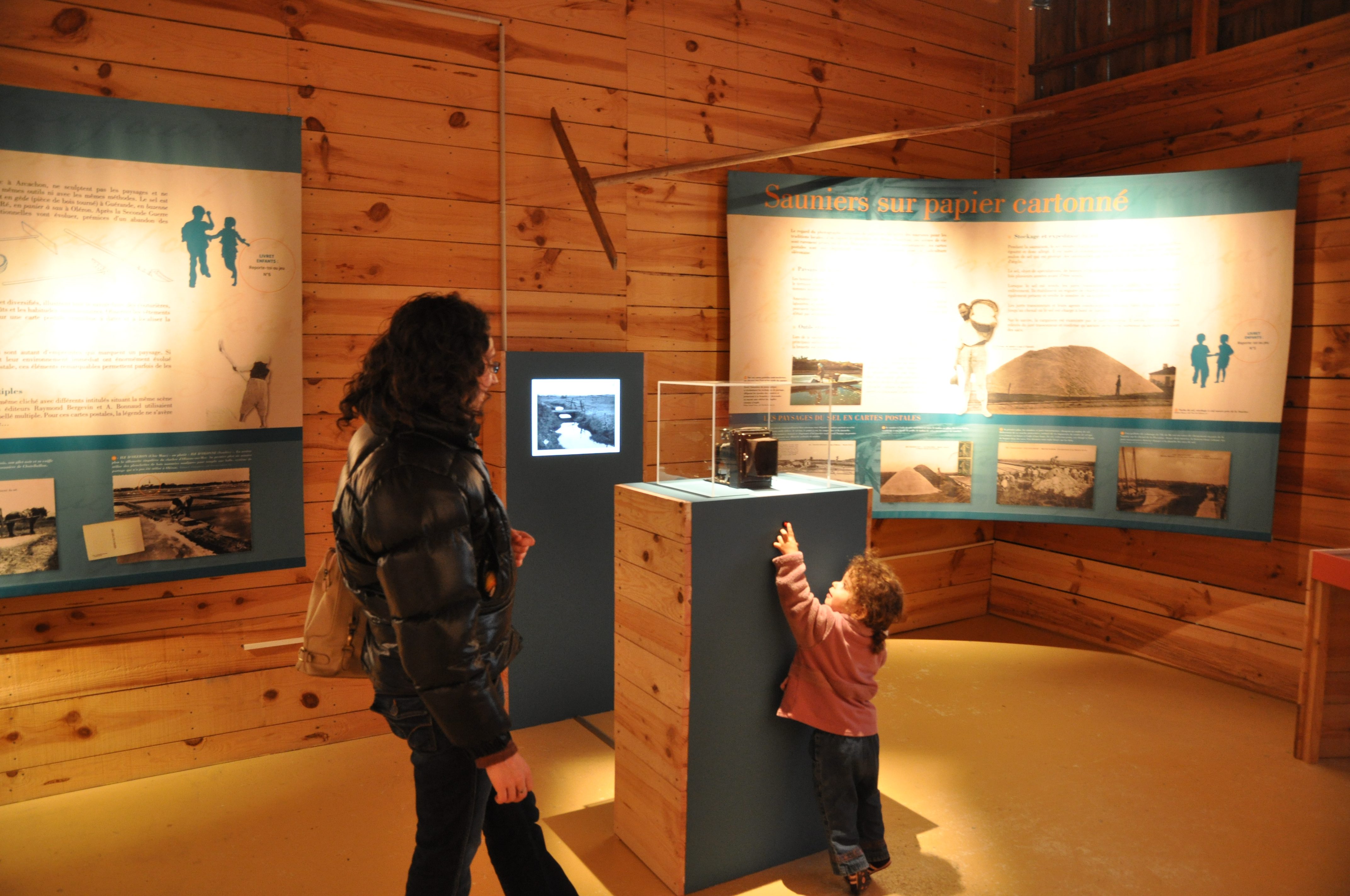 La première cabane invite le public à découvrir le fonctionnement d’un marais salant, les étapes de la récolte du sel, son utilisation et le commerce que l’on en faisait à partir de l’île d’Oléron. Un film présente l’histoire de la saliculture, la création du site et les différentes saisons du marais et du travail du saunier.