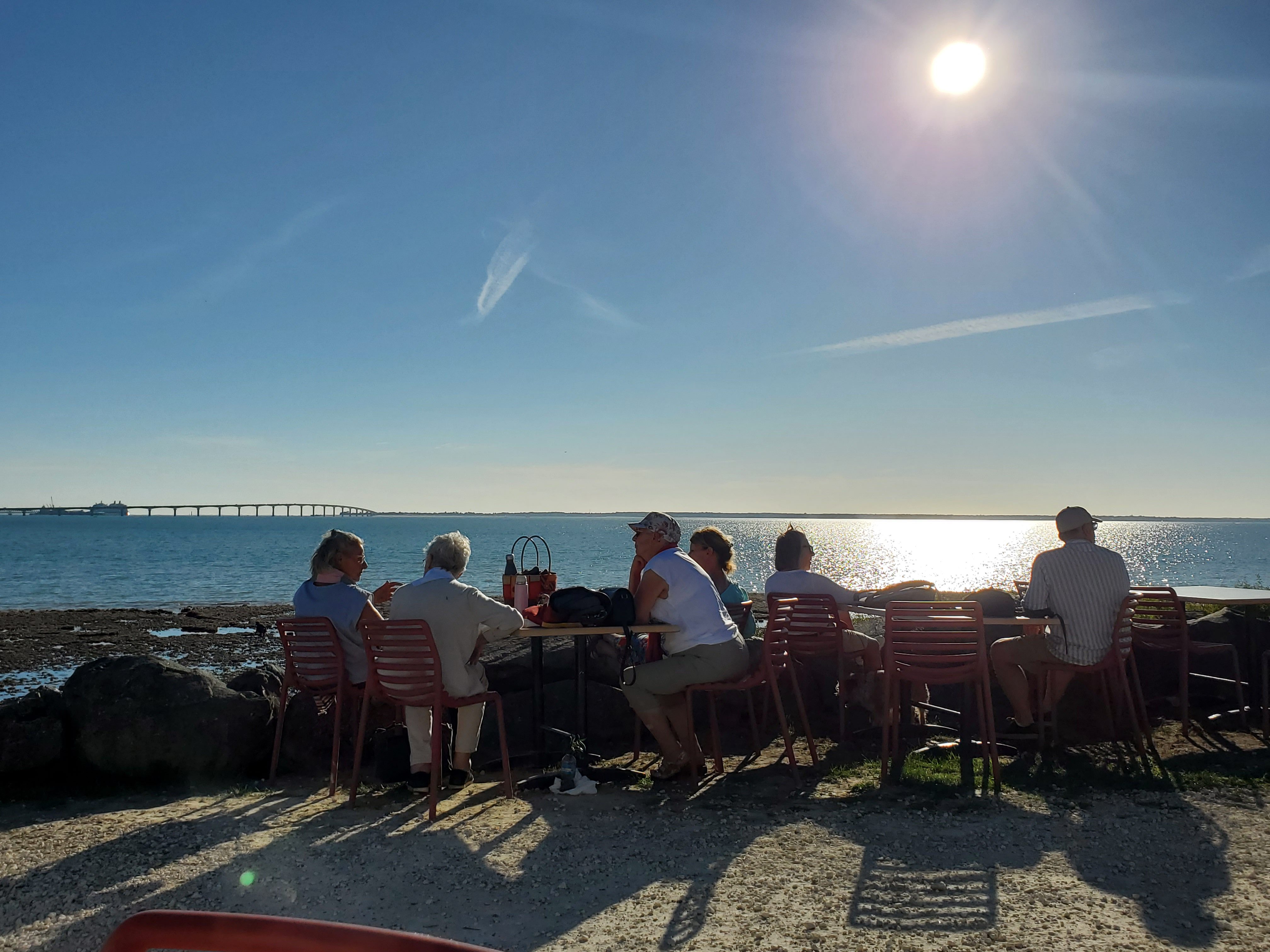 Profitez de notre terrasse couverte avec une vue imprenable sur le Pertuis Breton, l’Île de Ré et son pont.